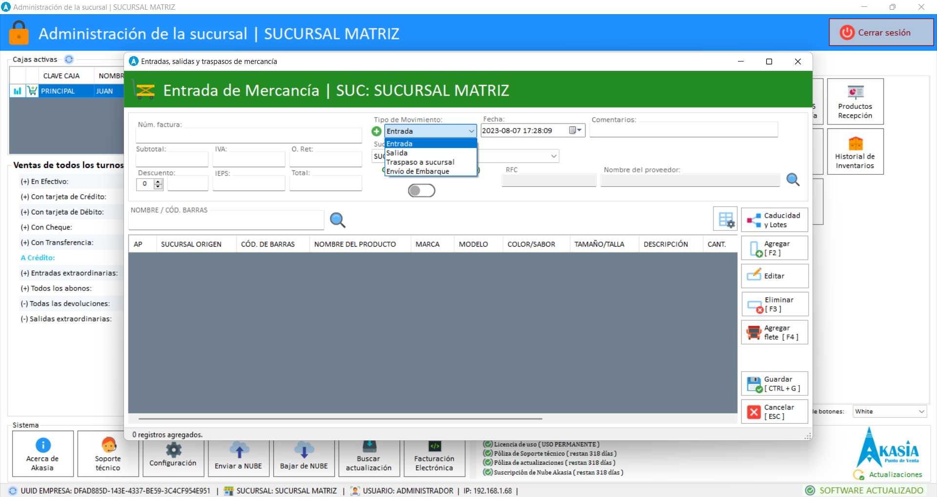 Akasia Punto de Venta te brinda la capacidad de administrar tus traspasos de mercancías y embarques de productos de manera eficiente y precisa.