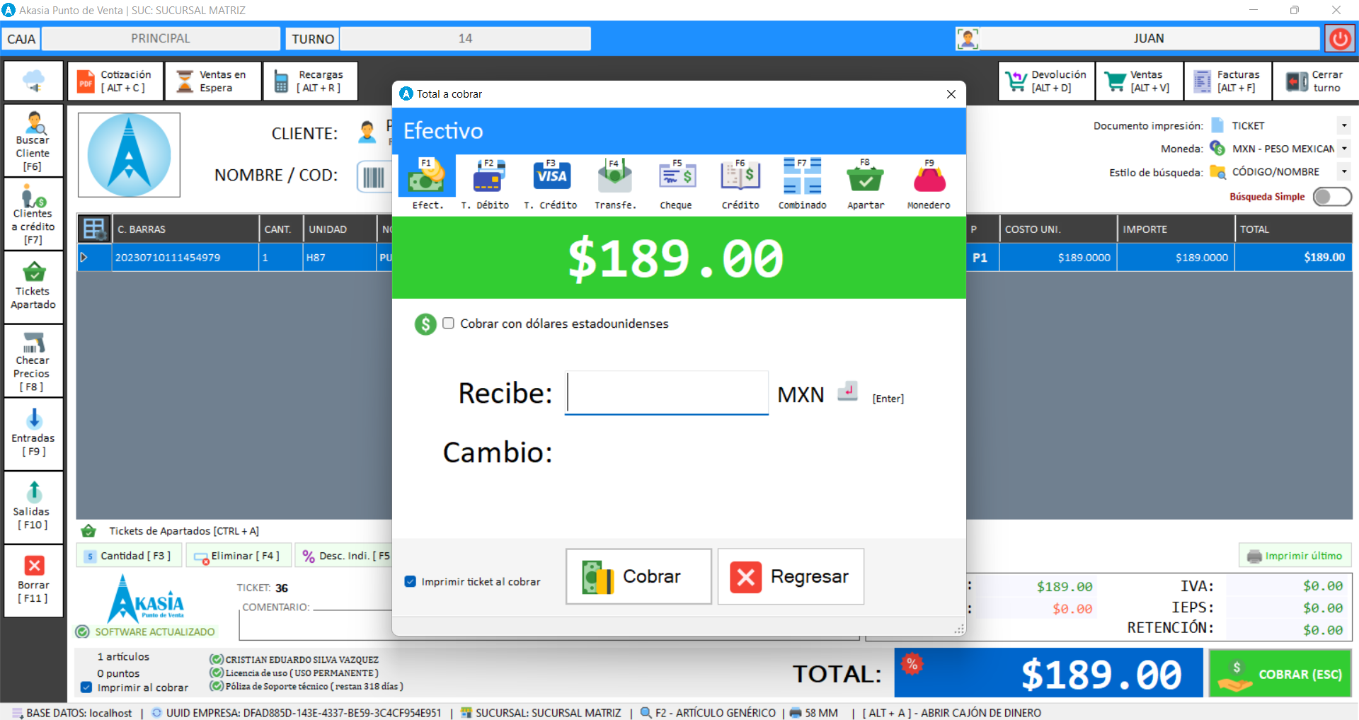 Puedes implementar cualquier metodo de pago que prefieras, desde efectivo hasta tarjetas, cheques o transferencias. Con Akasia Punto de Venta no hay límites ¡incluso puedes dar crédito a tus clientes!
